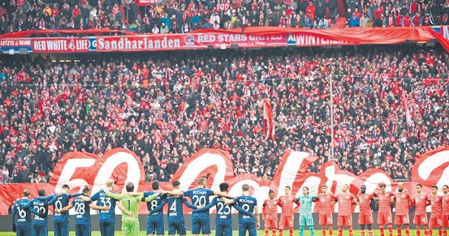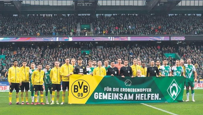 Allianz Arena'da oynanan Bayern Münih-Bochum maçı öncesi, oyuncular ve hakemler sahanın ortasında, yaklaşık 70 bine yakın taraftar da tribünlerden saygı duruşuna eşlik etti. Bremen Weser Stadyumu'nda oynanan Werder Bremen ve Borussia Dortmund maçında da futbolcular sahaya "Deprem kurbanları için birlikte yardım edin" pankartıyla çıktı.