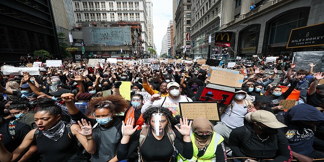 New York'ta zaman zaman trafiği kapatan binlerce eylemciye Times Meydanı'nda sağlık çalışanları da destek verdi. Broadway Caddesi üzerinde ise göstericiler çevreledikleri polislerden diz çökmesini istedi ancak polisler diz çökmedi.