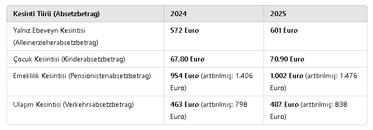 Yeni Kesinti Oranları (Absetzbeträge)