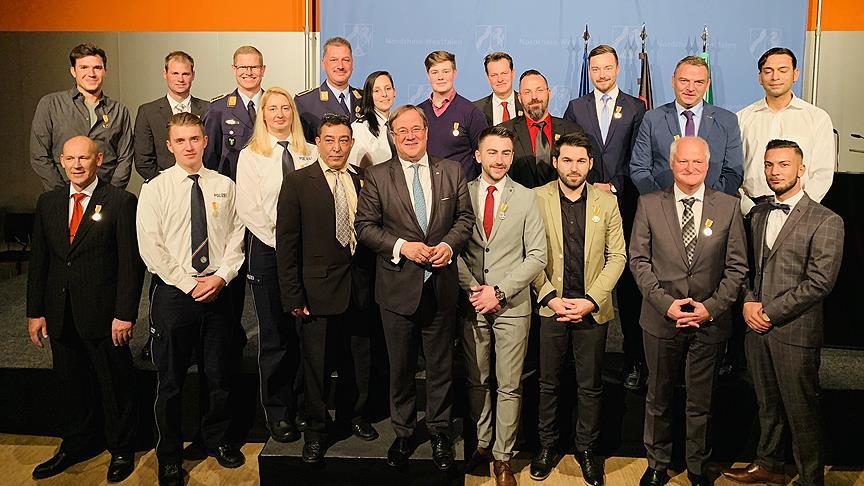 Almanya'nın Kuzey Ren Vestfalya (KRV) Eyalet Başbakanı Armin Laschet, başkalarının hayatını kurtarmak için kendi hayatlarını tehlikeye atan ve aralarında 4 Türk'ün de bulunduğu 21 kişiye "Kahramanlık Madalyası"takdim etti.