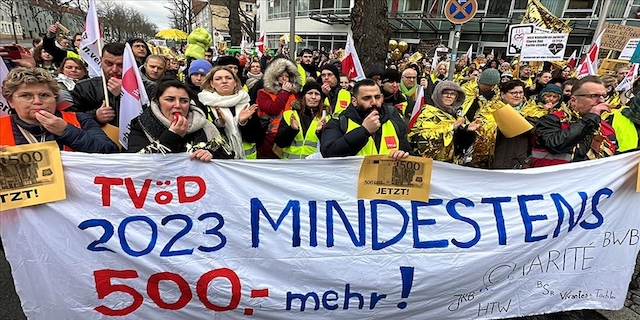 Kamu şirketlerinde 2,5 milyon çalışan için yüzde 10,5 veya en az 500 avro ücret artışı talep eden Verdi Sendikası, 27-29 Mart'ta yapılacak toplu sözleşme görüşmeleri öncesinde yapılan bu uyarı grevleriyle işverenler üzerine baskıyı artırmayı hedefliyor. İşverenler görüşmelerde 2 yıl için toplam yüzde 5 oranında ücret artışı teklif etmişti.
