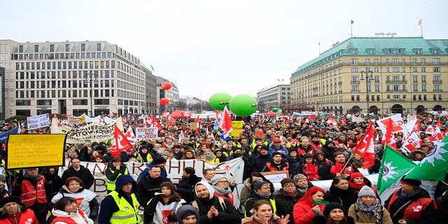Çeşitli sendikaların çağrısıyla bugün başta Berlin olmak üzere birçok eyalette binlerce kamu çalışanı iş bırakma eylemine katıldı.