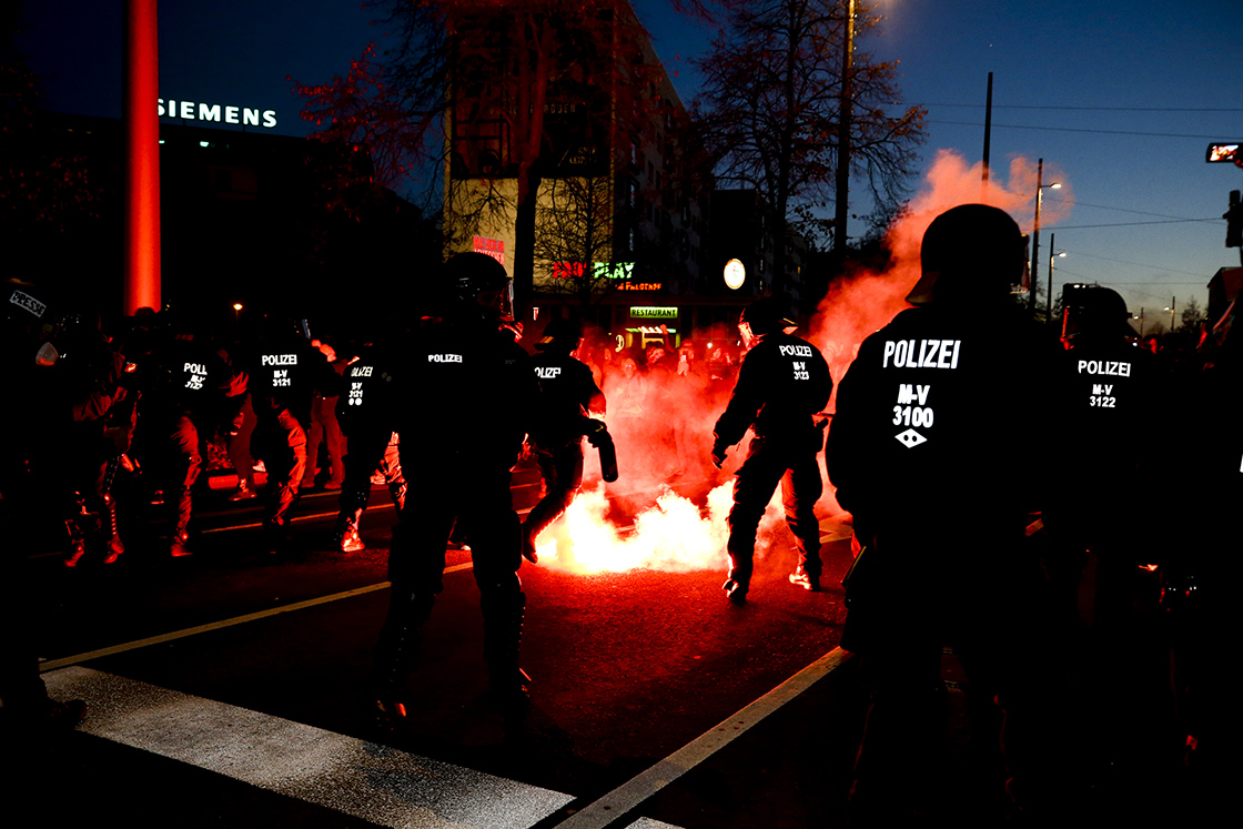 Alman basınında yer alan haberlere göre, polis, aralarında çok sayıda aşırı sağcının da bulunduğu göstericilerin meydanda mesafe ve maske takma gibi Kovid-19 kurallarına uymamasını gerekçe göstererek eylemi yaklaşık 2,5 saat sonra sonlandırdı.