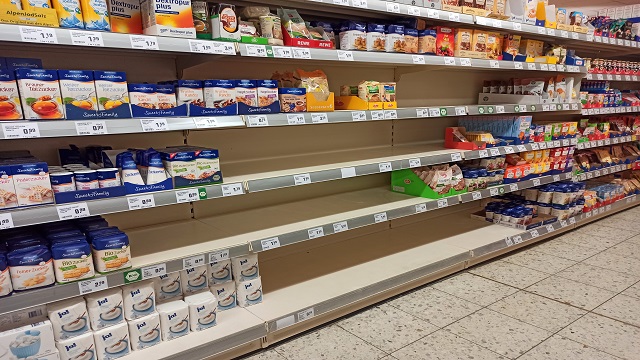 Almanya’daki dev marketlerde de fiyatlar ikiye katlanmış durumda. Almanlar sıvı yağın yanı sıra un, pirinç, bulgur, makarna ve tuvalet kağıdına hücum etmeyi sürdürüyor. Bu hücum sonucunda artık marketlerde un ve diğer ürünler sayıyla veriliyor.
