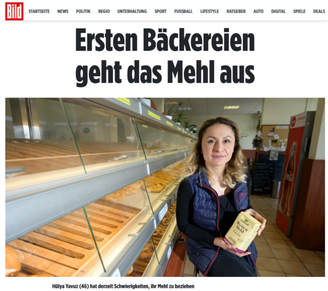 Bild Gazetesi, “Unu biten ilk fırın. Hülya artık ekmek pişiremiyor” başlığını kullandı. 46 yaşındaki Türk fırıncı, bir haftadan uzun süredir yeterli miktarda un ve sıvı yağ bulamadığını, bu nedenle bir çok ekmek çeşidini üretemediğini anlattı. Hülya Yavuz, bazı ürünleri hazır alıp bu darlığı ve yüksek fiyat sıkıntısını aşmaya çalıştığını belirtti. Haftada 12 kilo un ve 10 litre yağ kullandıklarını söyleyen Yavuz, yine de müşteri ve komşuların dayanışmasına seviniyor.