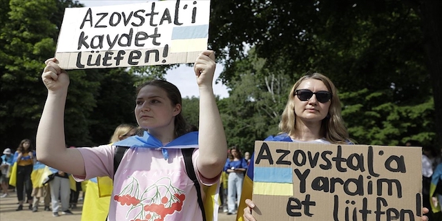 Göstericilerden Eva Yakubovska, Rusya'nın uzun süredir kuşatma altında tuttuğu Mariupol kentinde sıkışan bazı Ukraynalılar için 2 hafta önce de Türkiye'nin Berlin Büyükelçiliği önünde yardım çağrısı yaptıklarını belirterek, "İnsanlar 2 aydan fazla Mariupol kentinde sıkışmış durumda. İnanılmaz bir şey. Bu insanlar su ve gıda bulmak zorunda. 500 sivil de kentte sıkışmış durumda." dedi.