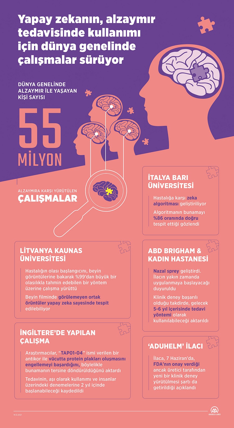 Hacettepe Üniversitesi Geriatrik Bilimler Uygulama ve Araştırma Merkezi Yönetim Kurulu Üyesi ve Psikiyatri Ana Bilim Dalı Öğretim Üyesi Doç. Dr. Özlem Erden Akı, yaptığı açıklamada, "tau" ve "amiloid" adı verilen proteinlerin beyinde birikmesiyle nöron ölümünün meydana geldiğini, bunun da ileri yaşta alzaymır tipi demansa sebep olduğunu söyledi.