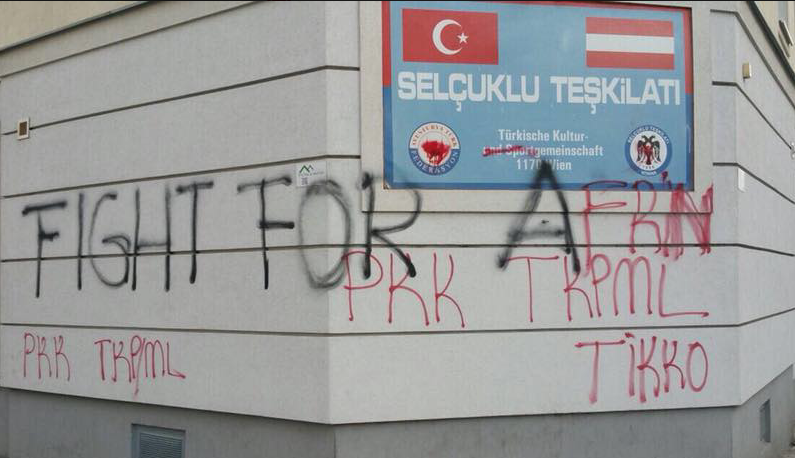Bu hafta içerisinde Viyana'da faaliyet gösteren Viyana Türk Kültür ve Spor Derneği terör örgütü sempatizanları tarafından saldırıya uğramış ve binanın duvarlarına sloganlar yazılmıştı.