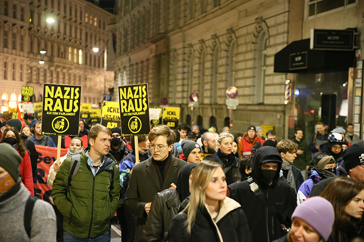 Gösterinin organizatörlerinden Axel Magnus, konuşmasında ana akım siyasi partilerin çeşitli alanlarda yaptıkları hatalar, göçmen ve mülteci karşıtlığı gibi yaklaşımların hem Avusturya'da hem de Avrupa'da aşırı sağın ciddi oranda güçlenmesini sağladığını savundu.