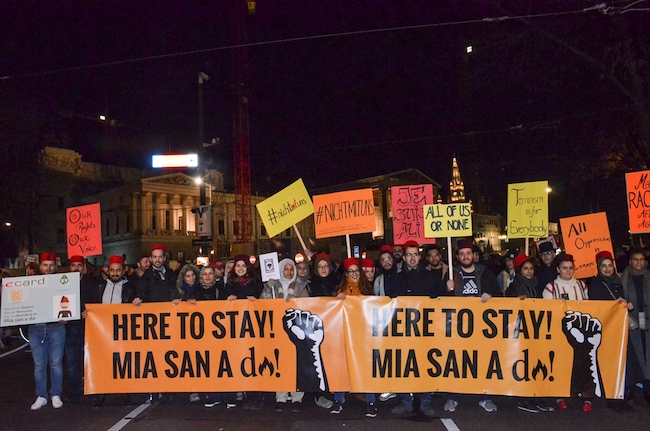 Aşırı sağcı Avusturya Özgürlük Partisinin (FPÖ) önceki gün sosyal medya üzerinden Müslümanlar ve Türkleri hedef alarak yaptığı ırkçı paylaşıma tepki gösteren çok sayıda protestocu, "Hepimiz Ali'yiz" yazılı pankartların yanı sıra fes takarak ayrımcılığa karşı birlikte yaşam mesajı verdi.