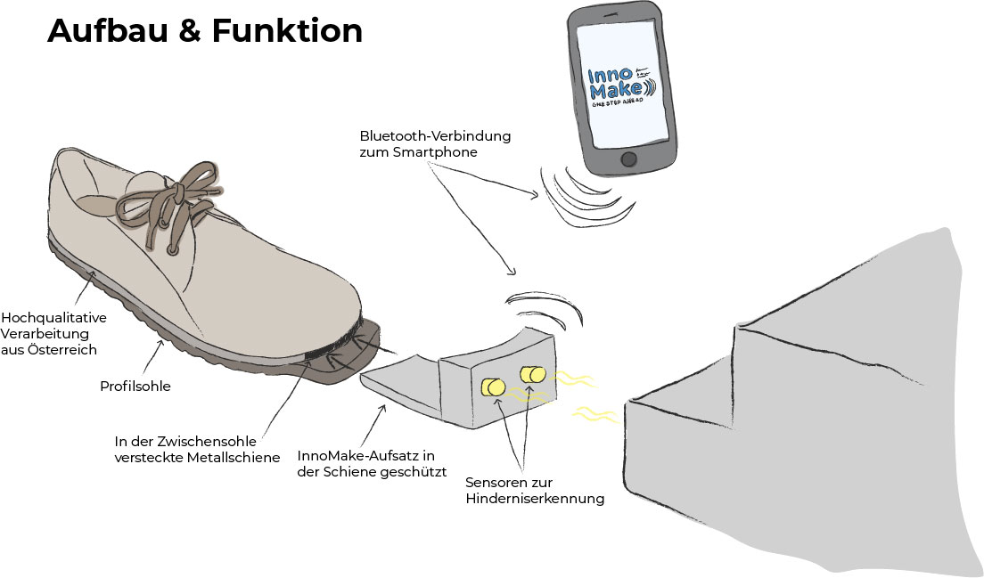 Avusturya’daki teknoloji şirketi Tec-Innovation mühendisleri görme engelliler için özel olarak geliştirilen ‘InnoMake’ adlı akıllı ayakkabı geliştirdi.