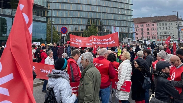 Avusturya Sendikalar Birliği (ÖGB) tarafından düzenlenen gösterilerde, "Fiyat artışları durdurulsun", "Fiyatlar aşağı, maaşlar yukarı" yazılı pankartlar açıldı.