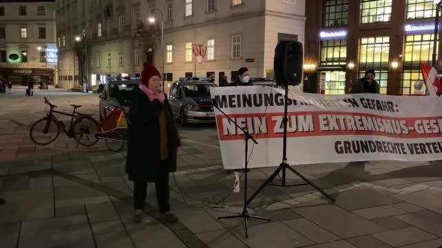Başkentin en önemli meydanlarından Aziz Stefan Meydan'ında toplanan Avusturyalılar, "Düşünce özgürlüğü tehlikede, yasa hayır, temel haklar korunmalı" yazılı pankart açtı.