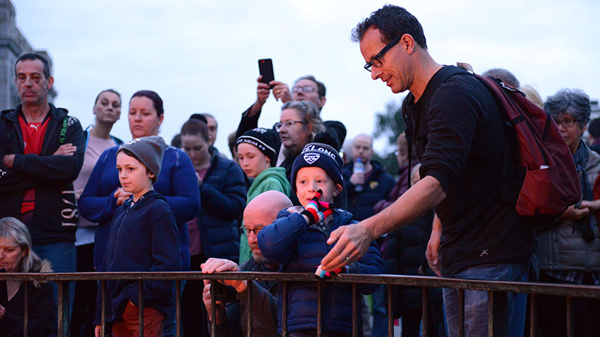 Sabahın ilk ışıklarında Gelibolu'ya Anzak askerleri tarafından yapılan çıkarmanın zamanı dikkate alınarak organize edilen Melbourne'deki "Şafak Ayini"ne on binlerce Anzak torunu katıldı.