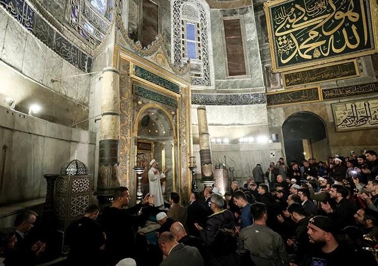 Erbaş, "1453 yılında, Fatih Sultan Mehmet'e fetih nasip oldu. İşte o fetihten sonra İstanbul bir İslam şehri oldu. Ayasofya camiye çevrilerek, Akşemseddin Hazretleri'nin minberde hutbesiyle İslam şehri olarak İstanbul, bütün dünyaya ilan edildi." diye konuştu.