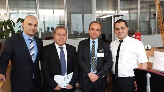 Başkonsolos Cemal ERBAY, Liebherr firması ziyaretinde Genel Müdür Gerhard Frainer, Stratejik Pazarlama ve İletişim D. Bşk. Wolfgang Pfister, Bölge Satış Müdürü Gökmen Hacısalihoğlu ve Proje Müdürü Selçuk Kalın’la görüştü ve yetkililerden firmanın tarihçesi ve faaliyetleri ile Türkiye’deki ticari bağlantıları ve yatırımları hakkında kapsamlı bilgiler aldı.