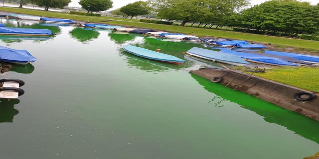 Salı günü (5 Mayıs 2020) öğlen saatlerinde Hard Bodensee'de gölün bir anda yemyeşil olması tedirginik ve şaşkınlık yaşanmasına neden oldu.