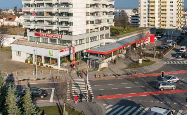 1976 yılında inşaa edilen Heldendankstrasse’deki binanın zemin katında bulunan İnterspar 43 yıldır müşterilerine hizmet veriyor. Mayıs 2019 yılında başlayan restore çalışmalarının 2020 yazına kadar tamamlanması bekleniyor.