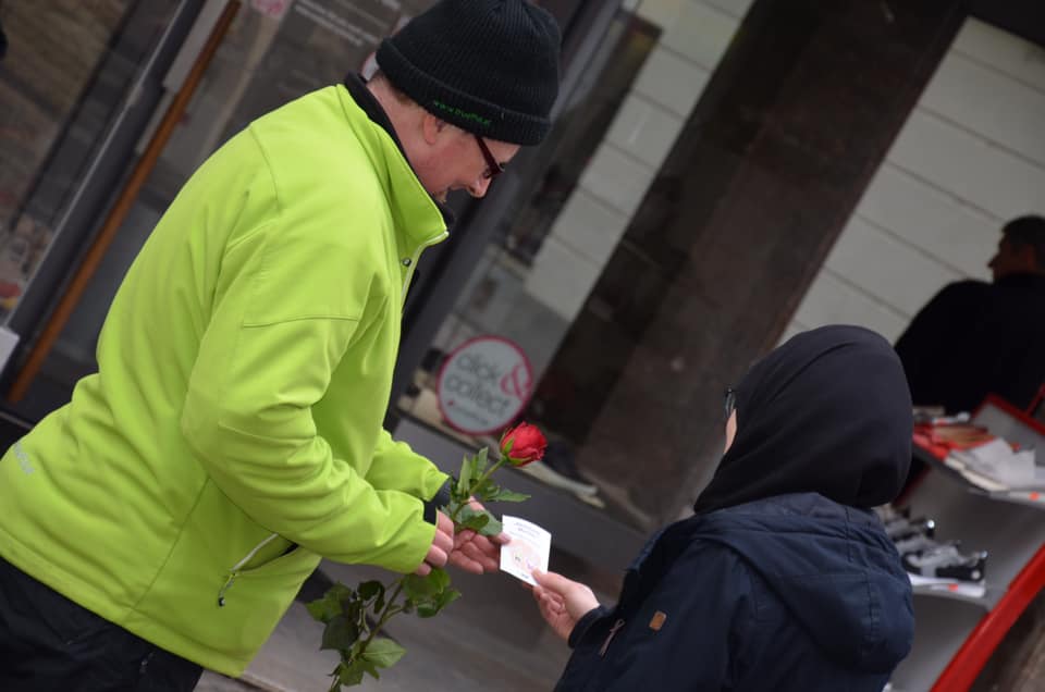 Feldkirch'de halkın yoğun olduğu merkezde Müslüman gençler yoldan geçenlere gül dağıttı, İslam hakkında bilgilerin yer aldığı broşürler verdi ve halkla sohbet etti.