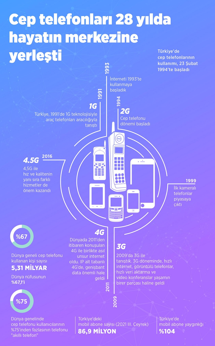 Sesin yanında datanın da önem kazanmasıyla 2009 itibarıyla 3G'ye geçen Türkiye, 1 Nisan 2016'da mobil cihazlarda internet hızını 10 kat artıran 4,5G teknolojisi sayesinde yeni imkanlara kavuştu.