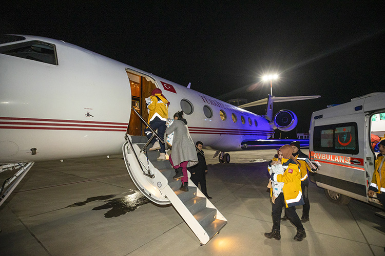 Depremle ilgili faaliyetlerde kullanılmak üzere tahsis edilen Cumhurbaşkanlığına ait uçak, Kahramanmaraş merkezli depremlerin etkilediği bölgelere hem sağlık ekipleri ve yardım malzemelerini taşıdı hem de bölgedeki durumu kritik yaralıları tedavileri için Ankara'ya ulaştırdı.