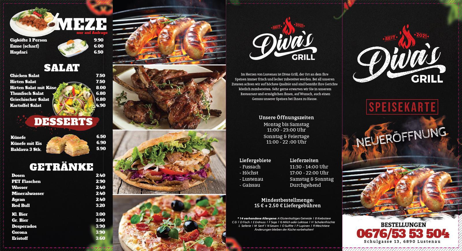 İşletmeci Murat Özcan; “Her damak tadına uygun eşşiz lezzetler ve formunu korumak iseyenler için fit menülerin yanı sıra çocuklara özel lezzetler ile konuklarımızı ağırlamaktan mutlukluk duyacağız. Türk ve Dünya mutfağının seçkin örnekleri ile kendini özel hissetmek isteyen her müşterimiz baştacımızdır. Ailece güzel zaman geçirebileceğiniz ve eşssiz lezzetleri tadabileceğiniz Diva's Grill vazgeçemeyeceğiniz bir adres olacağından eminiz” dedi.