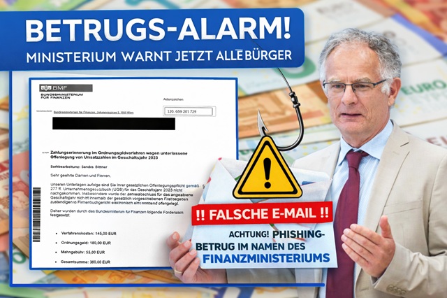 Avusturya Maliye Bakanlığı, son günlerde artış gösteren sahte e-posta dolandırıcılığına karşı tüm vatandaşları ve işletmeleri uyardı. Bakanlıktan yapılan açıklamada, Bundesministerium für Finanzen (BMF) adına gönderilmiş gibi görünen sahte ödeme hatırlatma e-postalarının dolaşımda olduğu belirtildi.