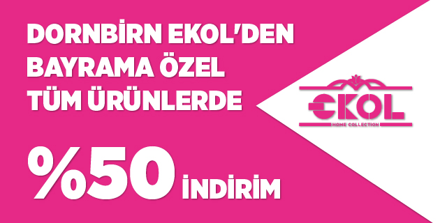 Yaklaşık üç senedir Dornbirn Hatlerdorf'da faaliyet gösteren ve açıldığı günden beri kaliteli hizmet anlayışından taviz vermeyen EKOL Home Collection, müşterilerine bayram hediyesi olarak tüm ürünlerde %50 indirim kampanyası başlattı.