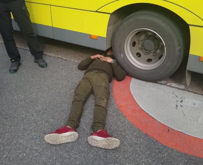 Kendini otobüsün altına atan Afgan genci farkeden Türk genci otobüs şoförünü son anda uyarırken, otobüs şoförü aracı hareket ettirmedi.