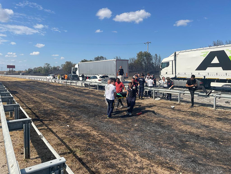 "Her iki şeritte de aynı anda oluyor. Edirne istikametinde bir örtü yangını var. Belki ondan dolayı, dikkatsizlikten ya da onun etkisiyle olmuş olabilir. Tabii bunların hepsi inceleme sonucu ortaya çıkacak. Şu anda öngörü karşı şeritte seyir içinde olabileceği yönde arkadaşların yorumu. Hem emniyet hem jandarma hem de sağlık birimlerimiz hepsi buradalar. Gerekli tedbirleri almış durumdalar. Yaralıların tamamı hastanelere sevk edilmiş durumda. Geçmiş olsun."