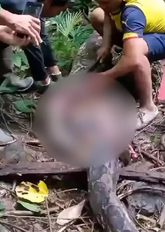Yarılan pitonun içinden 45 yaşındaki kadının cesedi çıkarıldı.