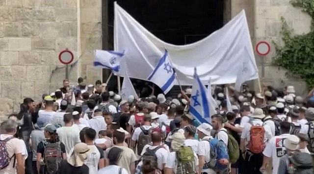Bayrak yürüyüşü dolayısıyla fanatik Yahudi yerleşimciler, İsrail polisi koruması altında Mescid-i Aksa'ya baskın düzenledi.