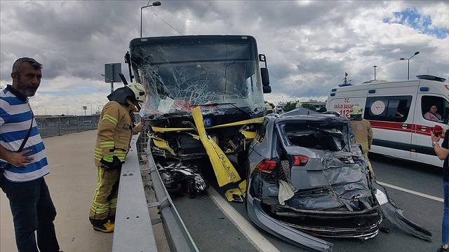 Arkadan gelen araçların da İETT otobüsüne çarpması ile 7 aracın karıştığı kaza yerine itfaiye ve sağlık ekipleri sevk edildi.