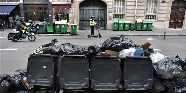 Temizlik çalışanlarının grevi nedeniyle başkent Paris'te binlerce ton çöp yığını oluşurken, ulaşım sektörü çalışanlarının grevi tren ve otobüs seferlerinde büyük aksaklıklara yol açmaya başladı.