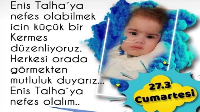 Tüm gelirinin SMA Tip1 hastası olan Enis Talha'ya bağışlanacak olan Kermeste, yeni ürünlerin yanı sıra kullanılmış ikinci el eşyalarda satışa sunulacak. Bebek kıyafetleri, ev eşyaları, dekorasyonlar ve bir çok ürünün satışa sunulacağı Kermes-Bitpazarına katılarak küçük Enis Talha'nın sağlığına kavuşması için sizde katkıda bulunabilirsiniz.