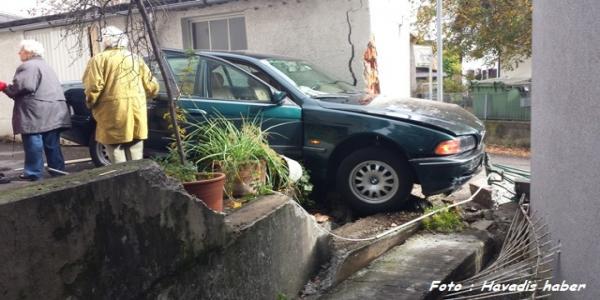 Çarpmanın etkisi ile öndeki duvar yıkılırken, yaşlı bayan da aracında sıkıştı. Çevre sakinlerinin polise haber vermesi ile olay yerine gelen sağlık ve polis ekipleri yaşlı bayanı sıkıştığı yerden çıkarttı.