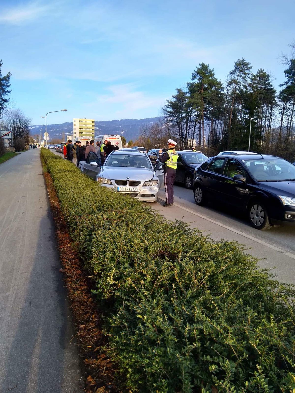 Bregenz’den Hard’a bağlantı köprüsünden (Ach Brücke) sonra meydana gelen kazada, en öndeki aracın ani fren yapması sonucu araçlar birbirine girerken; kazada büyük maddi hasar oluştu.