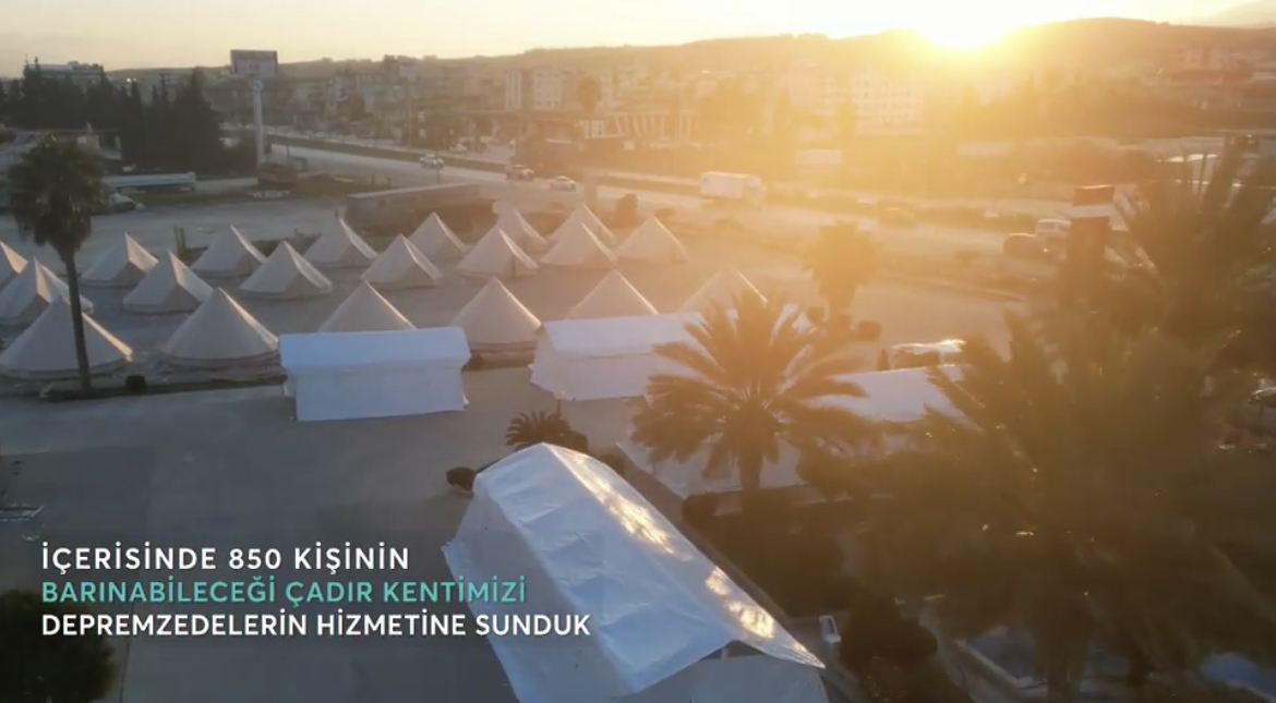 İçerisinde 850 kişinin barınabileceği çadır kenti Hatay'da depremzedelerin hizmetine sunan Hasene International'ın deprem bölgesine yardımları devam ediyor.