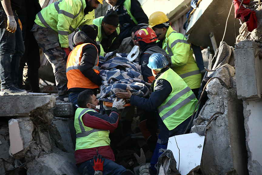 Kahramanmaraş merkezli 10 ili etkileyen 7,7 ve 7,6 büyüklüğündeki depremlerin ardından kente gelen askerler ile arama kurtarma gönüllüleri çalışmalarını sürdürüyor.