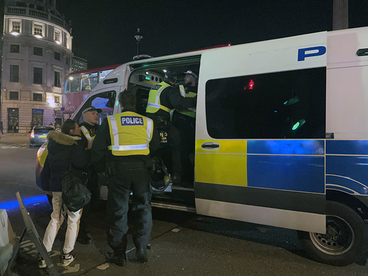 Yürüyüşün sona ermesiyle buradan ayrılan vatandaşlara sözlü ve fiziki saldırılarda bulunan sağcılarla polis arasında Trafalgar Meydanı'nda da gerginlik yaşanmıştı.