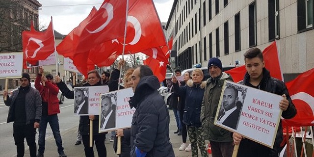 Wuppertal İl Emniyet Müdürlüğü önünde düzenlenen protesto gösterisine, polis tarafından vurulan Paksoy’un eşi Agnes ile çocukları Altan ve Maviş Paksoy da katıldı.