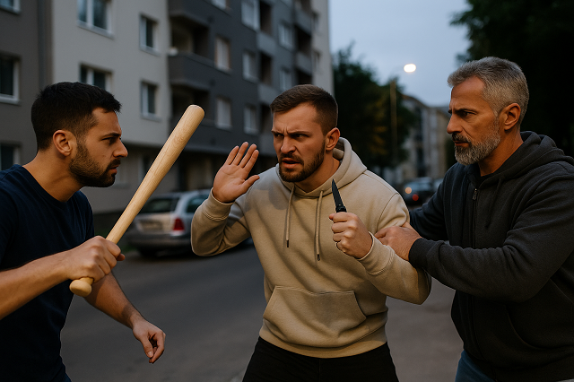 Polis raporuna göre kavga, saat 18.05 civarında bir apartman önünde başladı. 33 yaşındaki saldırgan, 28 yaşındaki Alman vatandaşı baseball sopasıyla darp etti ve hafif şekilde yaraladı. Ardından saldırganın babası da devreye girerek genci bir katlanır bıçakla tehdit etti.