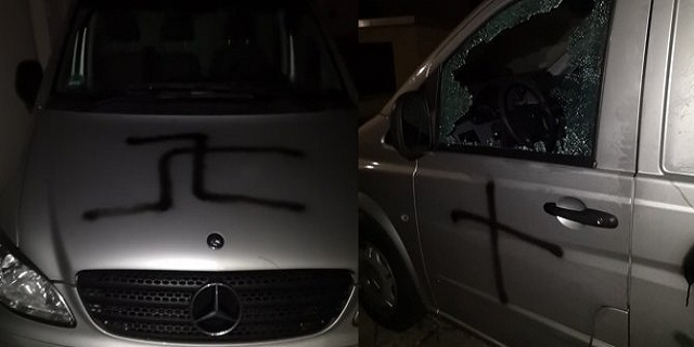 Cenaze nakil görevlisinden alınan bilgiye göre, Günzburg şehrinin en işlek caddesi Reisensburg Strasse üzerinde park halindeki cenaze nakil aracının bu gece yan camlarının kırıldı, ön ve sağ cephesine yazı ile gamalı haç çizildi.