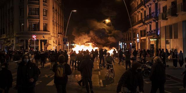 Barcelona'da da benzer sahneler yaşandı. Yollara barikatlar kuran protestocular mobilyaları ateşe verdi.