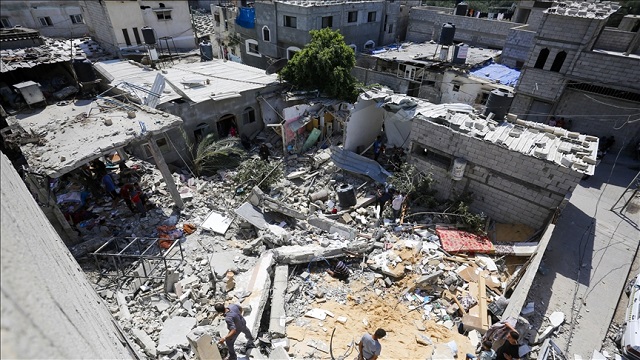 Sağlık ekipleri, Gazze Şeridi'nin merkezindeki Nuseyrat kampında 2 gün önce İsrail savaş uçakları tarafından bombalanan evlerinin enkazından er-Rai ailesinden 3 çocuk ve annelerinin cansız bedenini çıkardı.