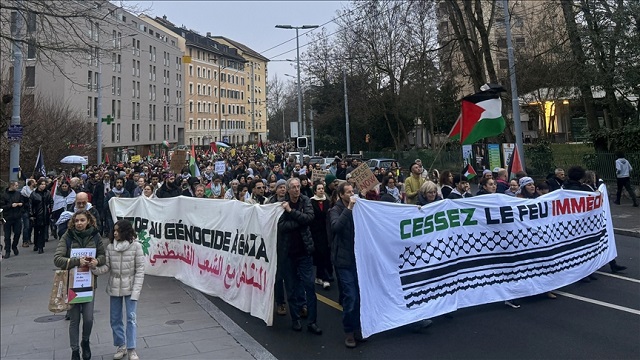 Polisin yoğun güvenlik önlemleri altında yapılan ve yaklaşık 2 saat süren yürüyüş, Birleşmiş Milletler (BM) Cenevre Ofisi önünde sona erdi.