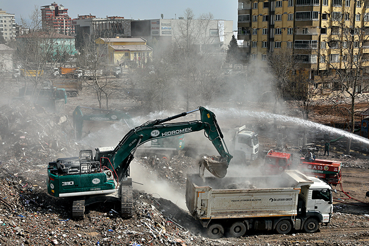 Kahramanmaraş merkezli 6 Şubat'ta meydana gelen 7,7 ve 7,6 büyüklüğündeki depremler sonrası kentte arama kurtarma çalışmalarının tamamlanmasının ardından başlatılan enkaz kaldırma çalışmaları sürüyor.