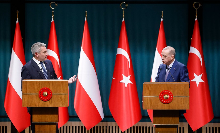 Görüşmelerin ardından Erdoğan ve Nehammer, kameraların karşısına geçti.
