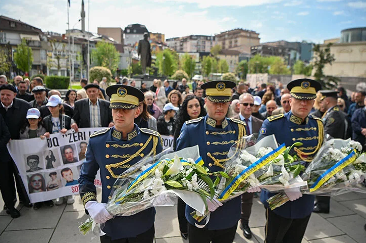 Anma etkinliği kapsamında Kosova Cumhurbaşkanı Vjosa Osmani, kurum ve kuruluşların temsilcileri ile savaş sırasında kaybolanların aileleri, Kosova Meclisi bahçesindeki kayıp kişiler anıtına çelenk bıraktı.