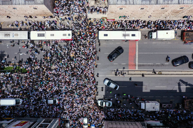 Ellerinde seccadeleriyle camiye ulaşmak isteyen vatandaşlar, Edirnekapı'dan Saraçhane'ye kadar Fevzipaşa Caddesi'ne bağlanan tüm cadde ve sokakları doldurdu.